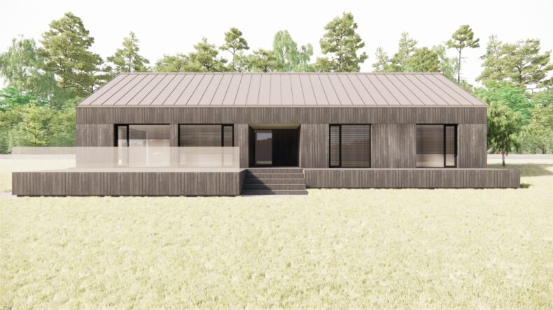 Minimalistyczne bryły, duże przeszklenia i naturalne kolory wpisują się w aktualne trendy. To dom z charakterem.